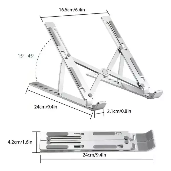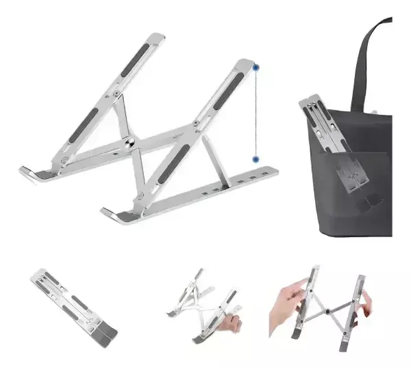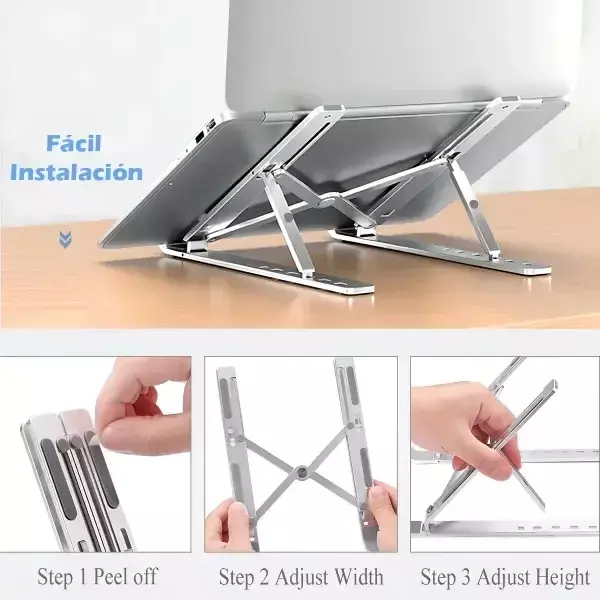 - Diseño de inclinación: acerca la pantalla y mejora el flujo de aire alrededor de la computadora portátil